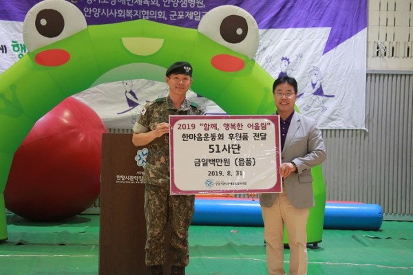 지난 2019년 8월 31일(토) 안양종합운동장 보조경기장에서 진행된 2019년 한마음운동회 "함께, 행복한 어울림"에서 51사단 후원품 전달식이 진행되었습니다.