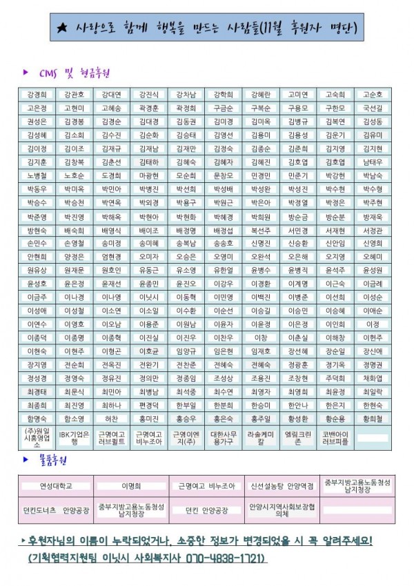 목록 11월 후원 이야기 페이지 정보 이닛시 조회 1,431 입력 2018-12-10 16:06 댓글 0 본문 목록 이전글백우현진복지재단 후원감사패 전달식 2018.12.27 다음글근명여자정보고등학교 후원금 전달식 2018.11.22 댓글 0 댓글목록 등록된 댓글이 없습니다.