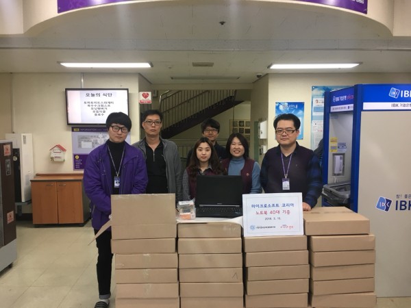 2018년 3월15일 마이크로소프트 와 테크숩코리아, NGO CLOUD Computing Group에서 안양시관악장애인종합복지관으로 노트북40대를 기증해주었습니다.