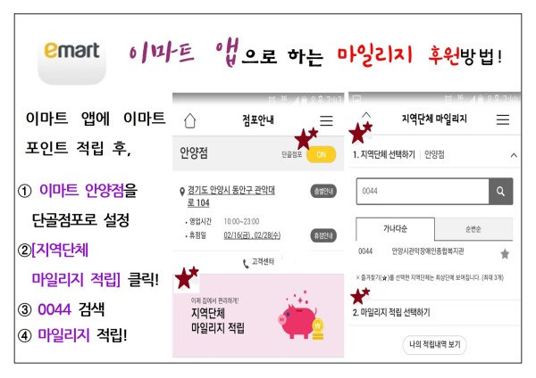 목록 이마트 [지역사회 마일리지]로 하는 사랑 나눔! 페이지 정보 최수연 조회 1,561 입력 2018-03-05 15:36 댓글 0 본문 이마트 앱 에 적립된 포인트 만큼,지역사회 마일리지 적립으로우리복지관 장애인 이용자들에게 사랑을 나눠주세요!(이마트 영수증은 관내에 비치된 영수증함에 넣어주세요~) 목록 이전글2018년 2월 후원이야기 2018.03.06 다음글<2월 신규 모금함 업체> 흥부가 2018.02.26 댓글 0 댓글목록 등록된 댓글이 없습니다.