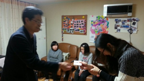 2016년 2월 3일 (수) 우리복지관 여자 그룹홈(삼성아파트 내)에 안양시 환경사업 소장님이 방문하시어, 온누리 상품권 12장과 사과 한박스를 후원해주셨습니다.
