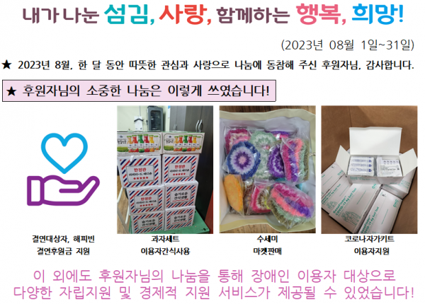 목록 2023년 8월 후원이야기 페이지 정보 이재인 조회 643 입력 2023-09-08 15:09 댓글 0 본문 . 목록 이전글2023년 9월 후원이야기 2023.11.15 다음글2023년 7월 후원이야기 2023.08.08 댓글 0 댓글목록 등록된 댓글이 없습니다.