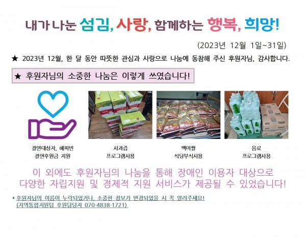 목록 2023년 12월 후원이야기 페이지 정보 이재인 조회 607 입력 2024-02-01 16:34 댓글 0 본문 . 목록 이전글2024년 1월 후원이야기 2024.02.20 다음글2023년 11월 후원이야기 2024.02.01 댓글 0 댓글목록 등록된 댓글이 없습니다.