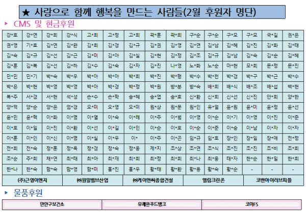목록 2023년 2월 후원이야기 페이지 정보 이재인 조회 746 입력 2023-03-10 11:36 댓글 0 본문 . 목록 이전글2023년 3월 후원이야기 2023.04.20 다음글2023년 1월 후원이야기 2023.02.20 댓글 0 댓글목록 등록된 댓글이 없습니다.