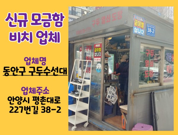 신규 모금함 비치 업체 안내 - 동안구구두수선대