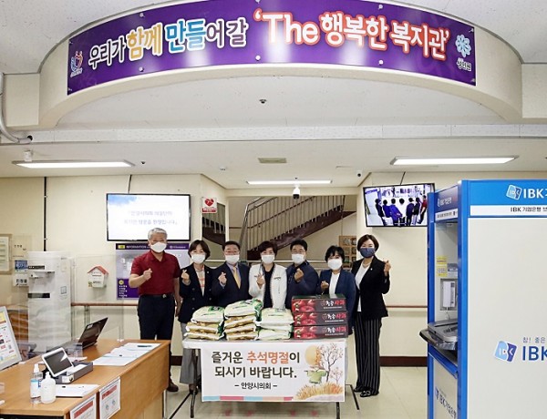 9월 28일(월) 오전 11시 안양시의회에서 안양시관악장애인종합복지관에 내방하여 추석 맞이 위문품(백미, 사과) 전달식이 진행되었습니다.