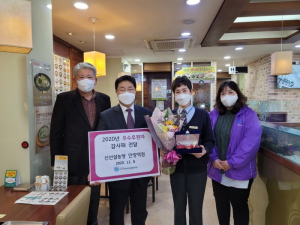 신선설농탕 안양역점, 2020년 우수 후원자 감사패 전달