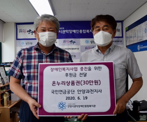 6월 19일(금) 국민연금공단 안양과천지사에서 30만원 상당의 온누리상품권을 후원해 주셨습니다.