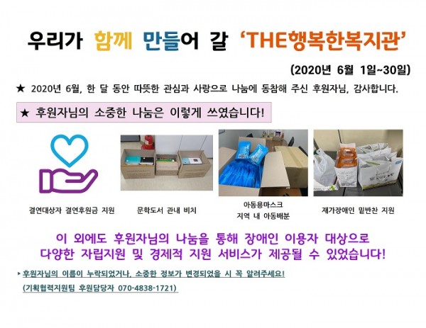 목록 6월 후원이야기 페이지 정보 이민영 조회 1,190 입력 2020-07-31 13:51 댓글 0 본문 목록 이전글7월 후원이야기 2020.08.11 다음글<해피빈참여안내> 지적장애를 가진 선애씨의 자립생활을 응원해주세요! 2020.07.08 댓글 0 댓글목록 등록된 댓글이 없습니다.