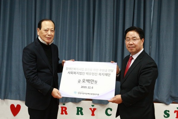 12월 6일(금) 우리복지관 강당에서 사회복지법인 백우현진복지재단의 후원금 전달식이 진행되었습니다.