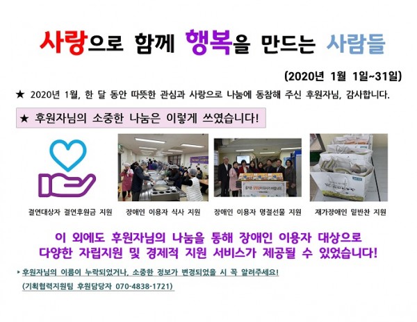목록 1월 후원이야기 페이지 정보 이민영 조회 1,324 입력 2020-02-07 16:49 댓글 0 본문 목록 이전글2월 후원이야기 2020.03.11 다음글안양시 동안구 보건소 설맞이 후원품 전달식 2020.01.28 댓글 0 댓글목록 등록된 댓글이 없습니다.