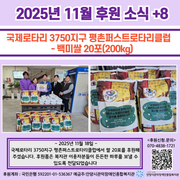 후원해주신 국제로타리 3750지구 평촌퍼스트로타리클럽에 감사의 마음♥을 전합니다