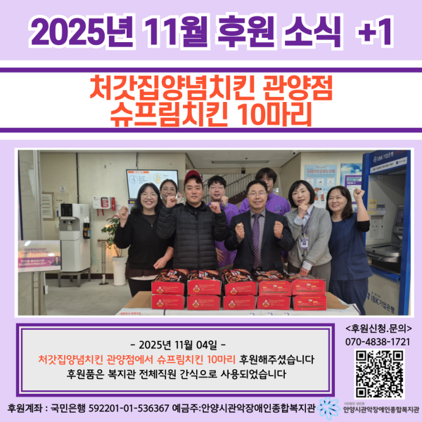 후원해주신 처갓집양념치킨 관양점에 감사의 마음♥을 전합니다