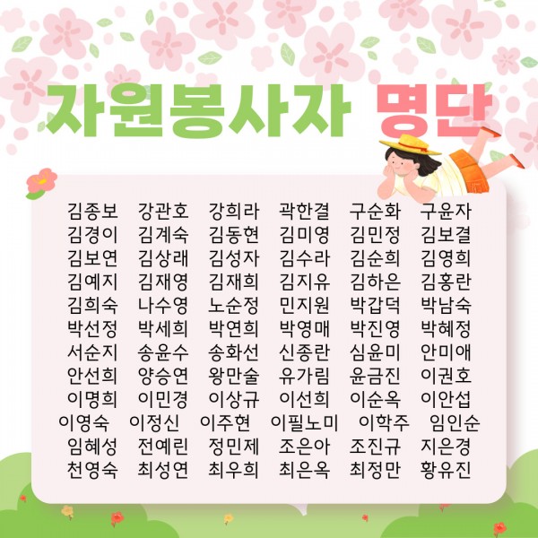 - 다음글2024년 2월 자원봉사자 명단 및 자원봉사활동 내용 2024.03.18