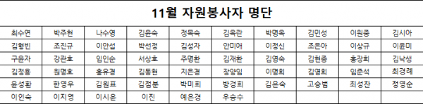목록 2021년 11월 자원봉사 명단 페이지 정보 운영자 조회 819 입력 2022-01-21 14:18 댓글 0 본문 코로나19 팬데믹으로 잠시 멈추었던 자원봉사 활동이 위드 코로나와 함께 재게 되었습니다^^저희 기관을 위해 애써주신 자원봉사자 모든분들께 감사의 말씀을 전합니다! 목록 이전글2021년 12월 자원봉사 명단 2022.01.21 다음글경기도 의왕시 정음학교 이미용 자원봉사 2021.10.12 댓글 0 댓글목록 등록된 댓글이 없습니다.