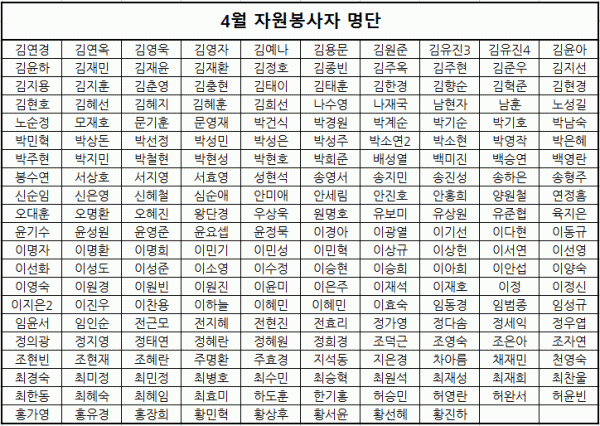 목록 2019년 4월 도움의 손길 페이지 정보 이동혁 조회 1,445 입력 2019-05-13 11:32 댓글 0 본문 4월 한달간 봉사에 참여하고 힘써주신 분들께 감사의 말씀을 드립니다^^위 명단에 이름이 누락되어 있는 분은 070-4838-1723으로 연락주세요 감사합니다. 목록 이전글2019년 5월 도움의 손길 2019.06.07 다음글51사단 2506부대 봉사활동 진행(4/17) 2019.04.23 댓글 0 댓글목록 등록된 댓글이 없습니다.