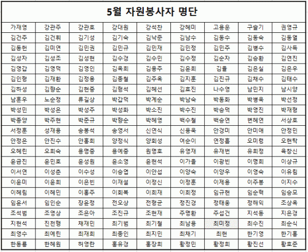 목록 5월 도움의 손길 페이지 정보 이동혁 조회 1,702 입력 2018-06-05 09:51 댓글 0 본문 5월 한달간 봉사에 참여하고 힘써주신 분들께 감사의 말씀을 드립니다^^위 명단에 이름이 누락되어 있는 분은 070-4838-1723으로 연락주세요 감사합니다. 목록 이전글6월 도움의 손길 2018.07.19 다음글4월 도움의 손길 2018.05.09 댓글 0 댓글목록 등록된 댓글이 없습니다.