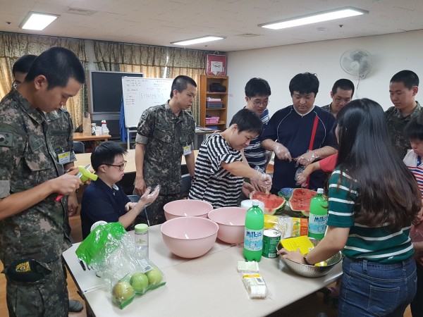 많은 군인분들이 방문하여 자원봉사에 참여해주어서 프로그램을 수월하게 진행할 수있었습니다.