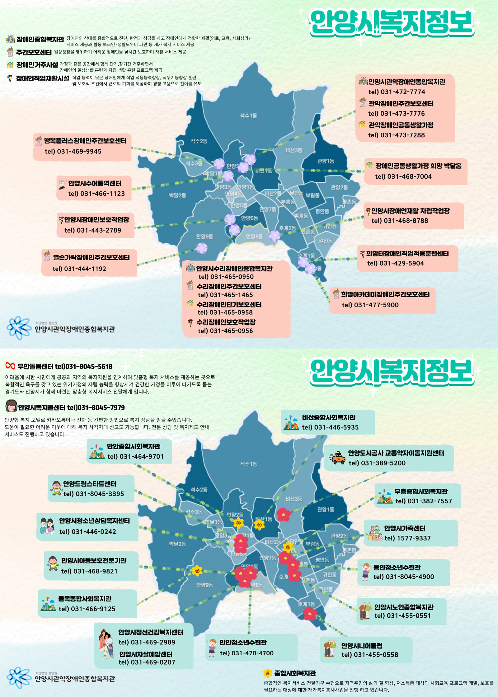 안양시 내 장애인, 노인 등 복지 관련 시설 정보 입니다. 이미지를 클릭하시면 크게 보실 수 있습니다~