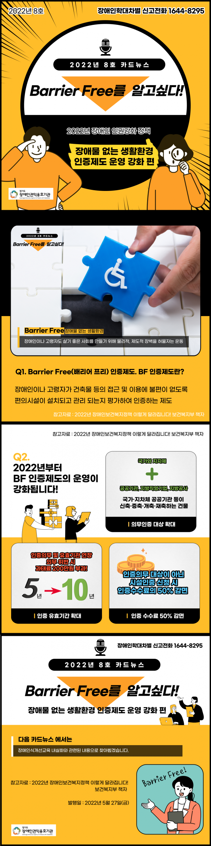 [카드뉴스] 2022년 장애인 인권강화 정책 "장애물 없는 생활환경 인증제도 운영 강화"