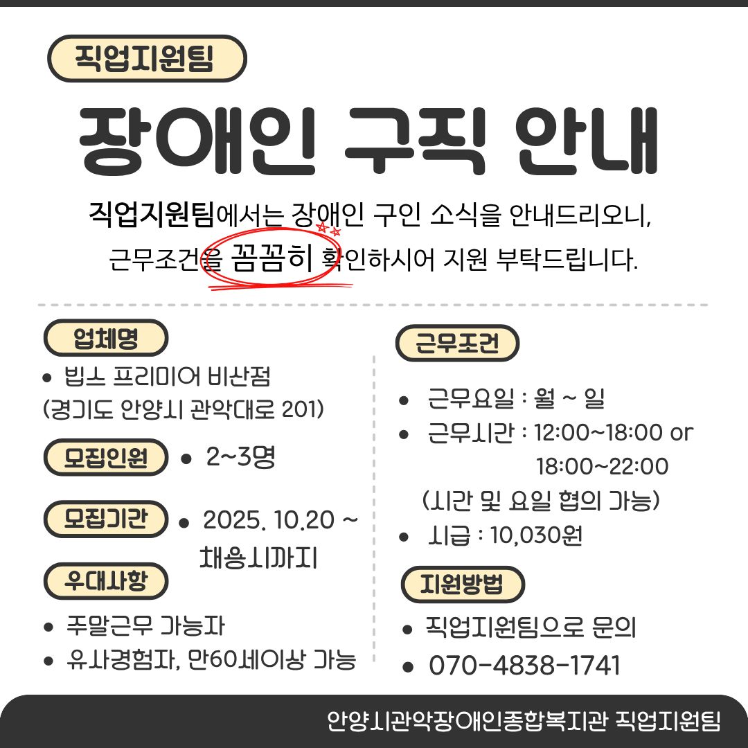 [장애인구인정보안내] 빕스 프리미어 비산점